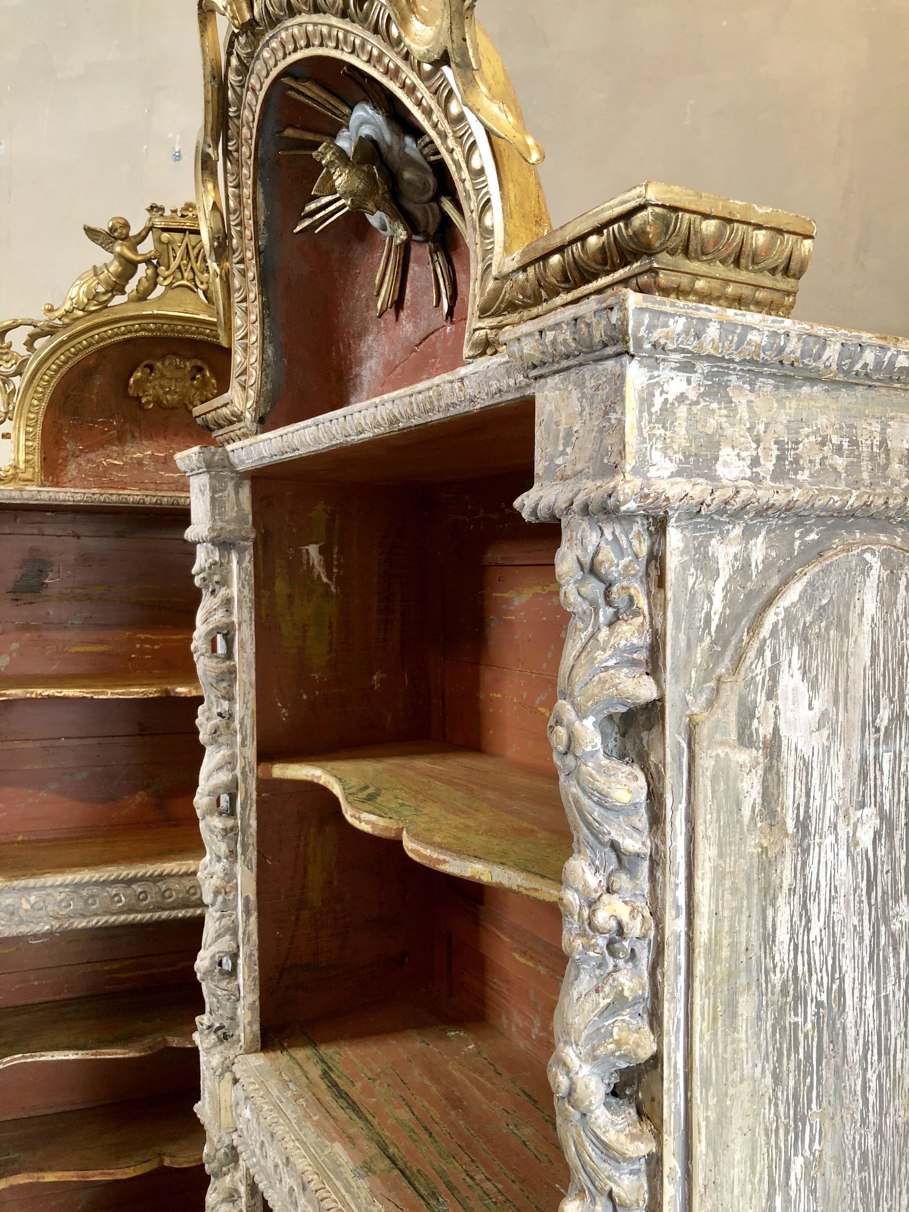 Light patina outside. Red-orange interior. On the top we find two beautiful gilded ancient fragments.